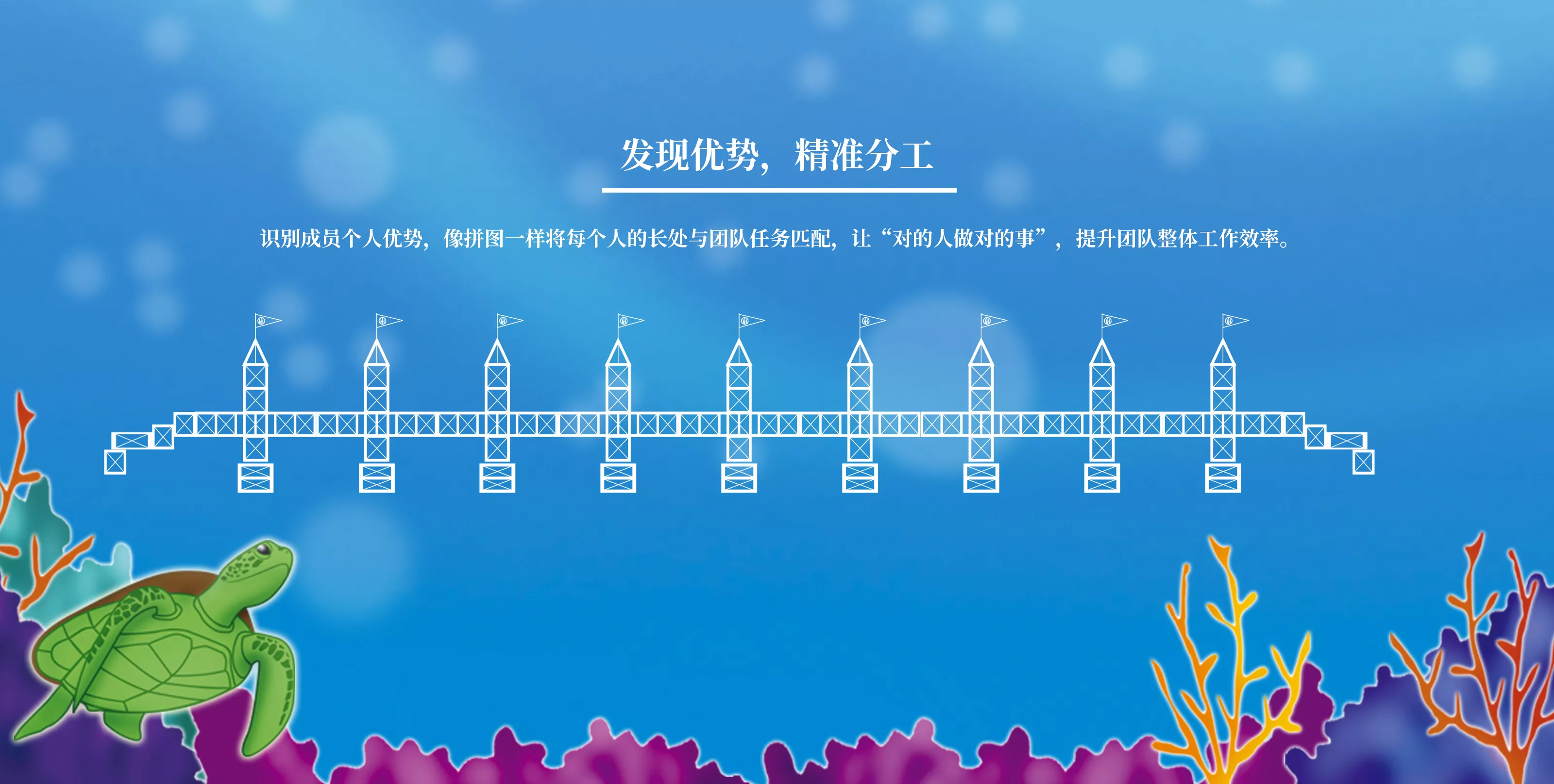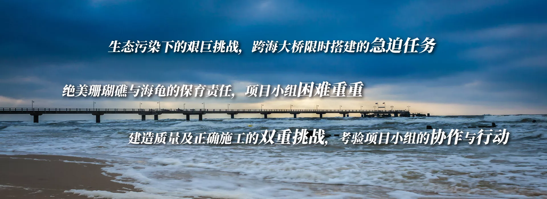 学员化身珊瑚岸建设公司各项目小组的核心成员,参与龟岛跨海大桥项目。面对激增的游客流量与脆弱的珊瑚礁生态,需设计兼顾环境保护与旅游效益的解决方案,通过团队的规划以优化桥梁建造工程,链接各项目小组的建造成果以完成一座兼具质量与符合设计标准的完美跨海大桥。